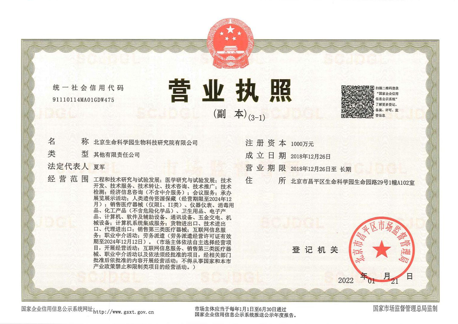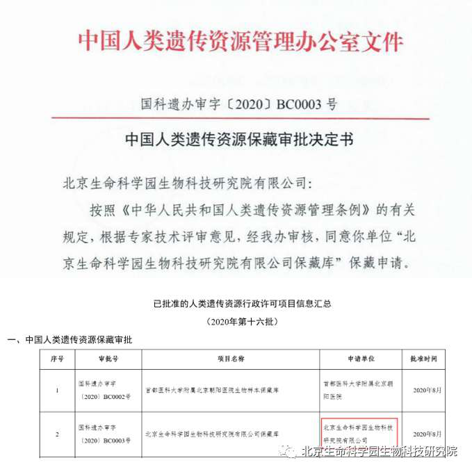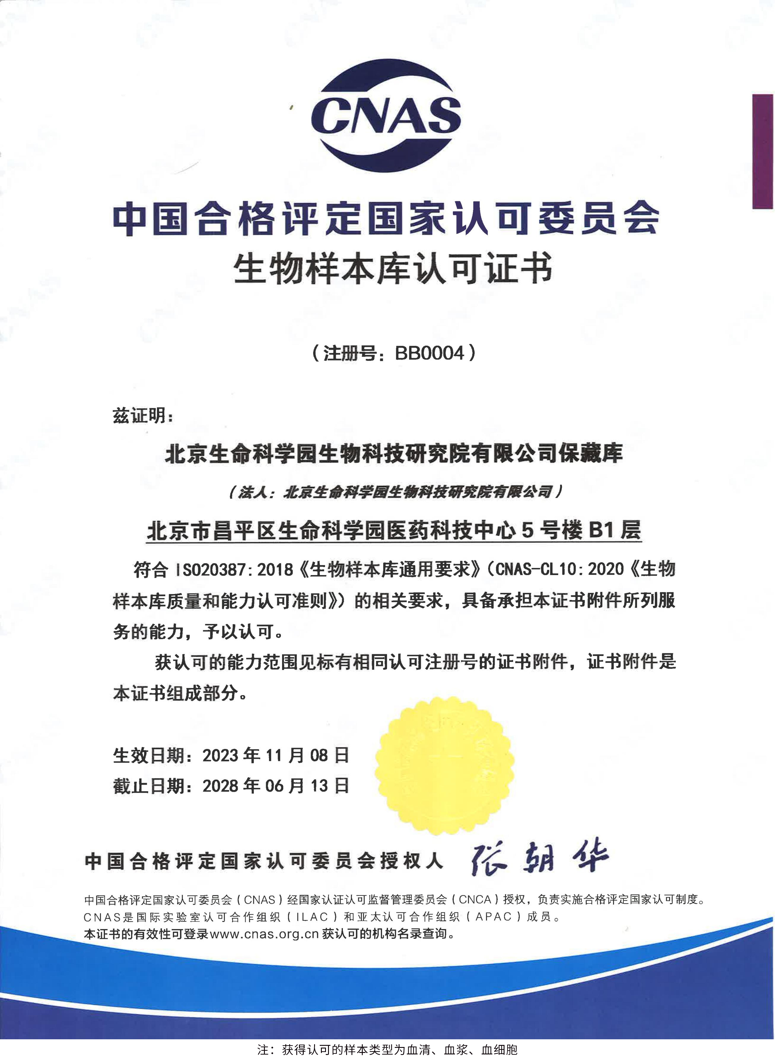 北京生命科學園生物科技研究院(以下簡稱“北京生物樣本資源庫”)(Biobank of Life Science Park,簡寫“BoLSP”)是一家由北京市科委和中關村生命科學園共同支持設立的第三方生物樣本庫公共服務平臺,秉承北京重大疾病臨床數據和樣本資源庫(以下簡稱“北京庫”)(Beijing Biobank of Clinical Resources,BBCR)十余年的發展成果,聚合眾多臨床樣本專家的專業共識,致力于在生命科學、生物醫藥研究領域發揮銜接樣本資源持有者與研究者的橋梁作用,解決生物樣本資源開發上下游信息不對稱、資源共享困難等問題。研究院在北京中關村生命科學園昌平園區建立了2000㎡生物樣本庫,最大存儲規模達1000萬份。研究院遵循CNAS-CL10:2020《生物樣本庫質量和能力認可準則》,同時結合北京庫過去十年的工作經驗與教訓,建立了一套完善的生物樣本保藏質量管理體系,從人、機、料、法、環、控多個角度,實現生物樣本保藏過程的全面質量控制,先后獲得國家科技部頒發的人類遺傳資源保藏行政許可證書和中國合格評定國家認可委員會(China National Accreditation Service for Conformity Assessment,CNAS)頒發的“CNAS認可證書”。